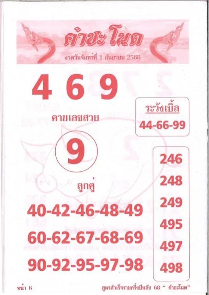 เลขเด่น: 4–6–9; ระวังเบิ้ล: 44, 66, 99
