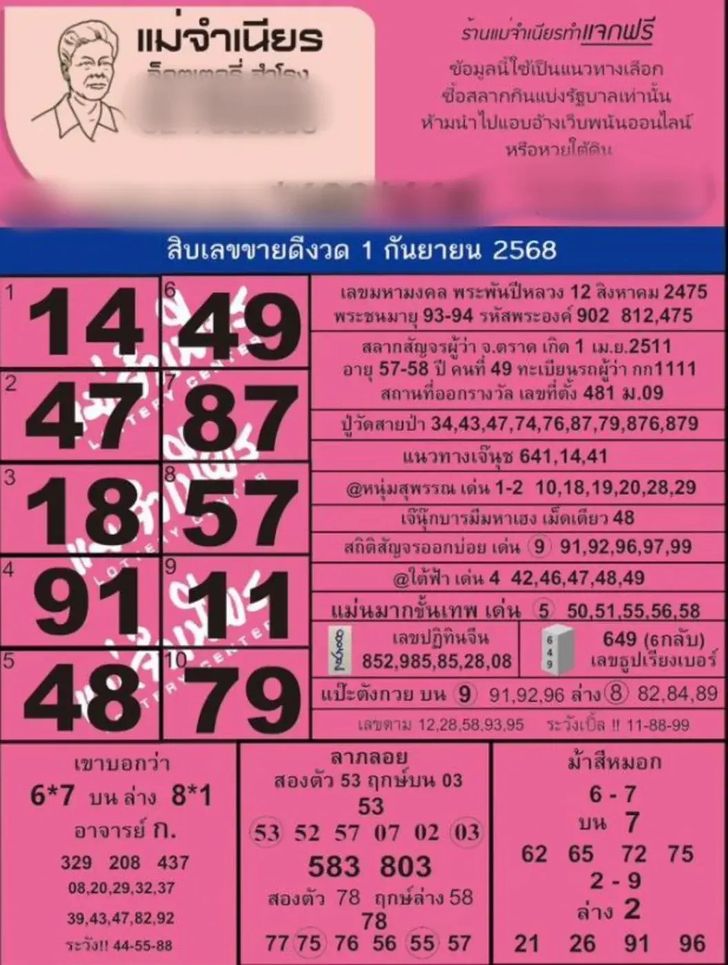 10 อันดับเลขขายดีจาก “แม่จำเนียร” อันดับ 1