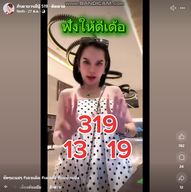 ก่อนหน้านี้ แม่น้ำหนึ่ง ได้โพสต์ข้อความจากฮ่องกงว่า “มาฮ่องกง รอบนี้ มีทีเด็ด มาเสิร์ฟค่ะ ติดตามรอ 1 กันยา นี้ เตรียมปัง” ทำให้แฟนคลับต่างเฝ้ารออย่างใจจดใจจ่อ ล่าสุด แม่น้ำหนึ่งก็ได้ปล่อยคลิปวิดีโอ “ฟังให้ดีเด้อ ชัด ๆ นะแม่ ๆ” ผ่านช่องทางโซเชียลมีเดียของตนเอง เพื่อให้แนวทางเลขเด็ดแก่คอหวยที่ติดตามกันแบบไม่มีกั๊ก